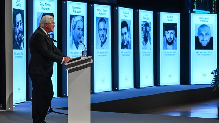 In Hanau gedenken Überlebende, Angehörige und Politiker der Opfer des rechtsextremen Attentats vom 19. Februar 2020.