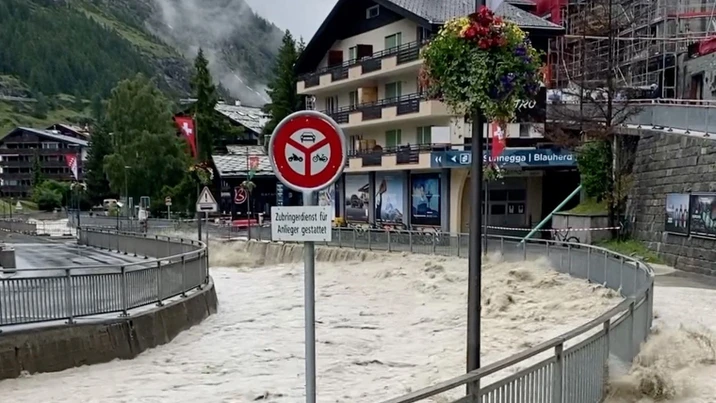 Starkregen, Gewitter und Schneeschmelze sorgen unter anderem in der Region am Matterhorn für Überschwemmungen. In Zermatt ist der Verkehr lahmgelegt und Schulen bleiben geschlossen.